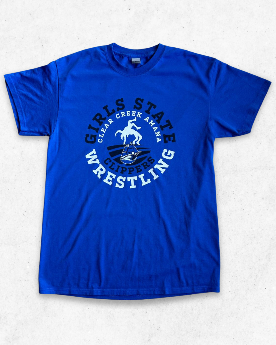Camiseta Vintage Americana para Adulto del equipo femenino de lucha libre, Girls State Clippers, en color Azul.