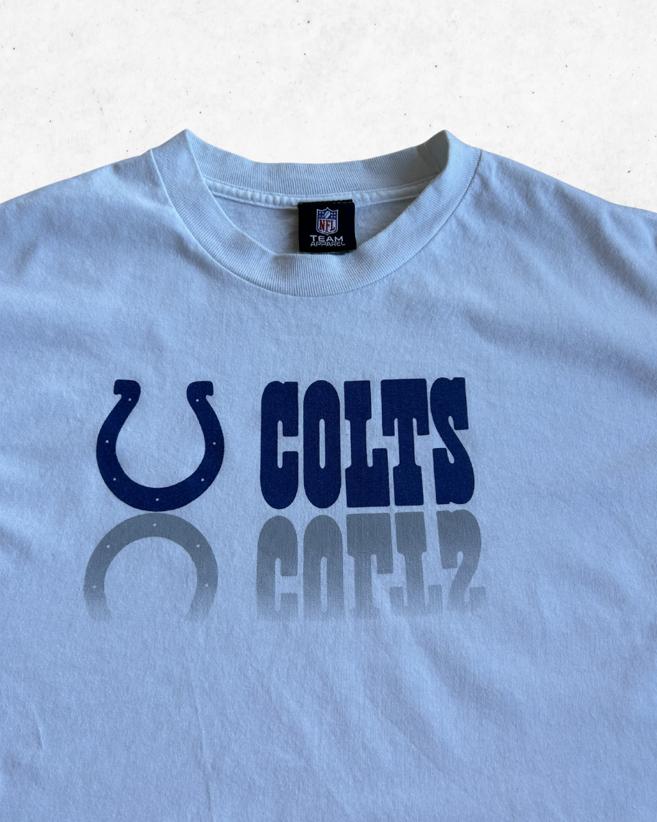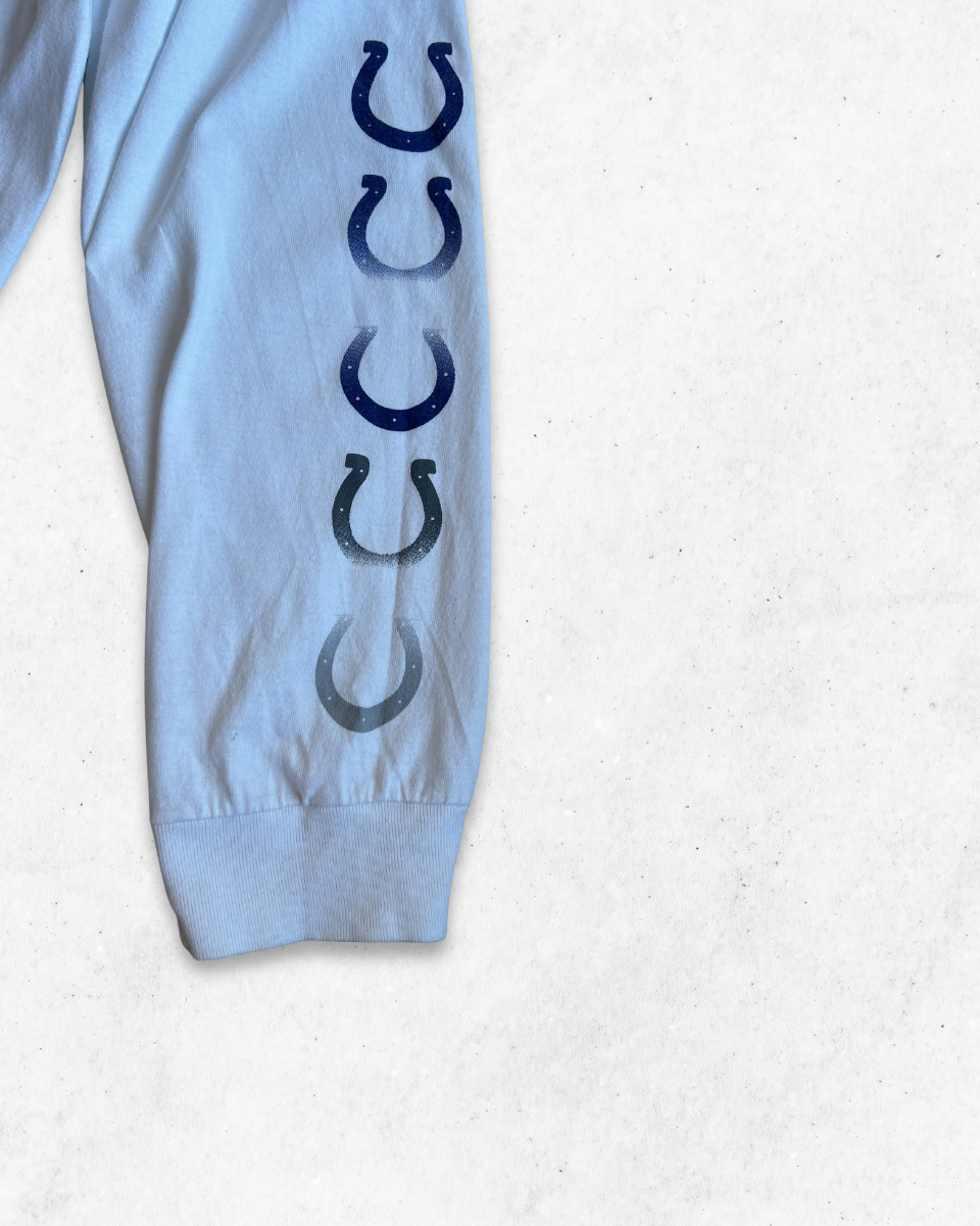Camiseta de manga larga para Hombre del equipo de la NFL, Indianapolis Colts, en color Blanco. En buen estado, como se puede apreciar en las fotos. Sin desperfectos ni manchas reseñables, salvo una ligera mancha en la parte inferior y un leve agarrón, fácil de tratar y poco visible (Ver últimas fotos)
