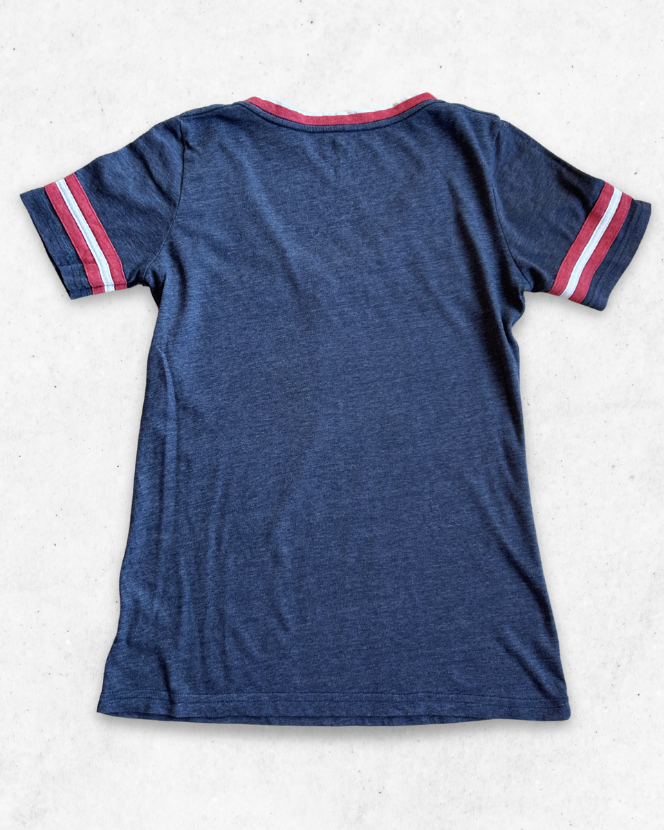 Camiseta para Mujer del equipo de la MLB, Boston Red Sox, en color Gris. Con el cuello de pico.