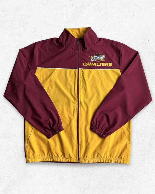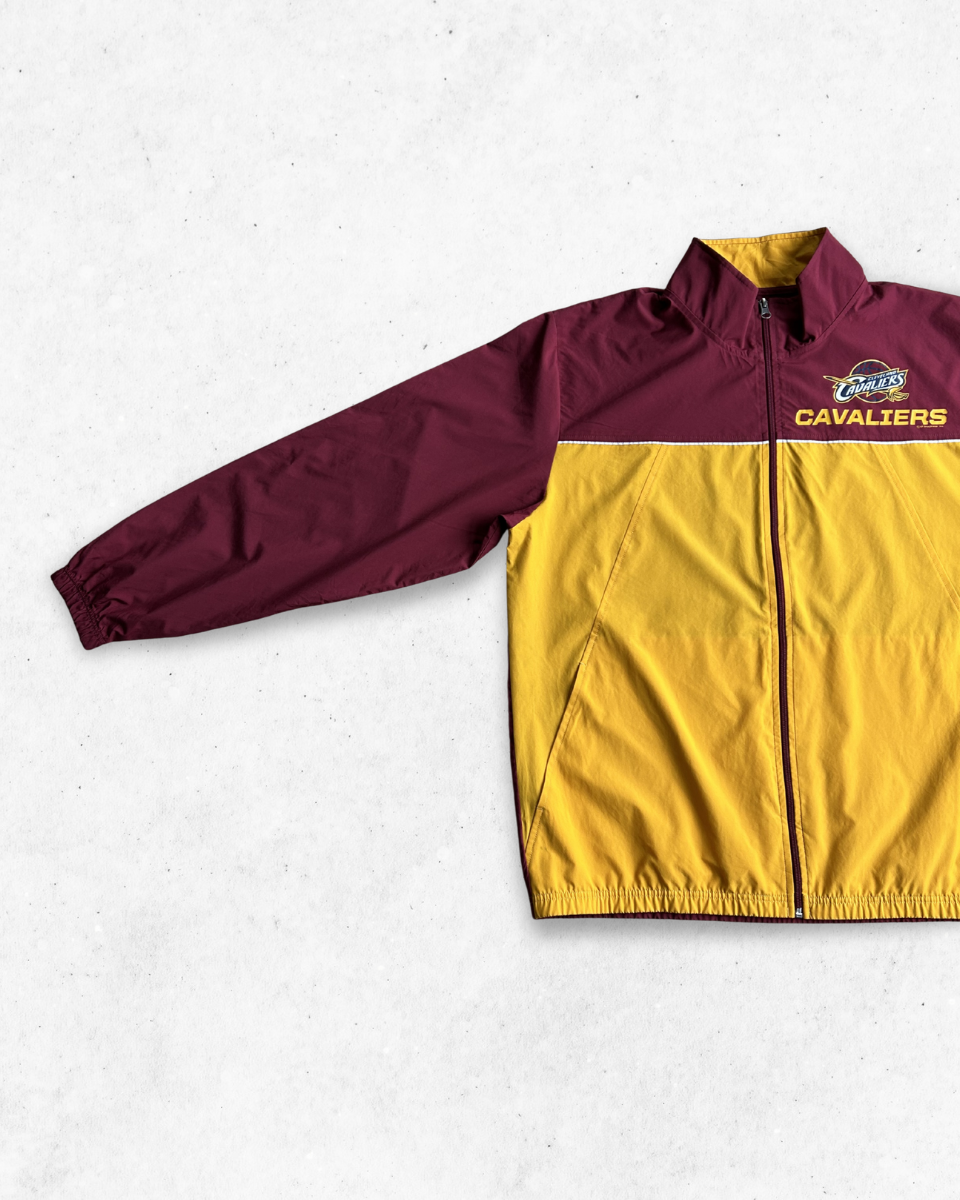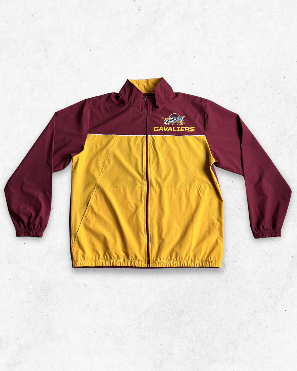 Chaqueta Cortaviento para Adulto del equipo de la NBA, Cleveland Cavaliers, en color Burdeos y Amarillo.