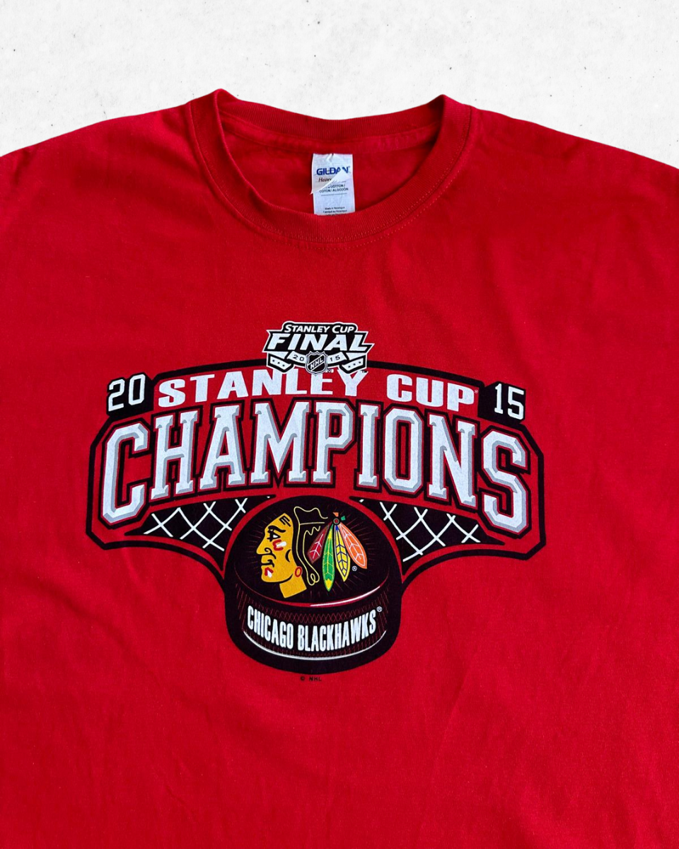 Camiseta para Adulto del equipo de la NHL, Chicago Blackhawks, en color Rojo. Edición Stanley Cup Final de 2015.