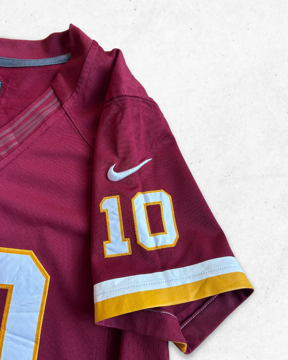 Camiseta para Mujer del equipo de la NFL, Washington Redskins, con el dorsal 10 del jugador Robert Griffin III, en color Burdeos. Marca Oficial de la NFL con Nike.