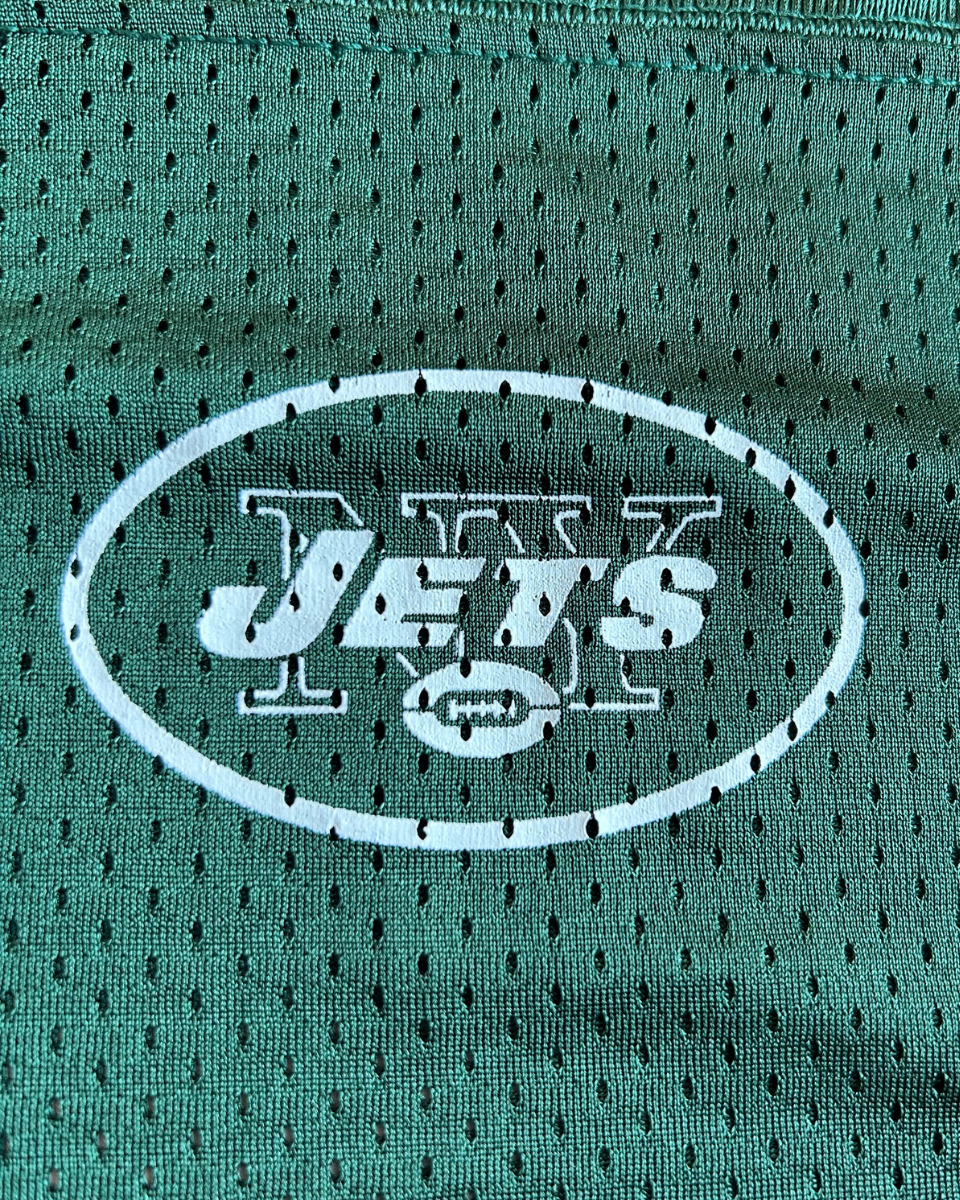Camiseta para Adulto del equipo de la NFL, New York Jets, con el dorsal 4 del jugador Brett Favre, en color Verde. Marca Oficial de la NFL Reebok.