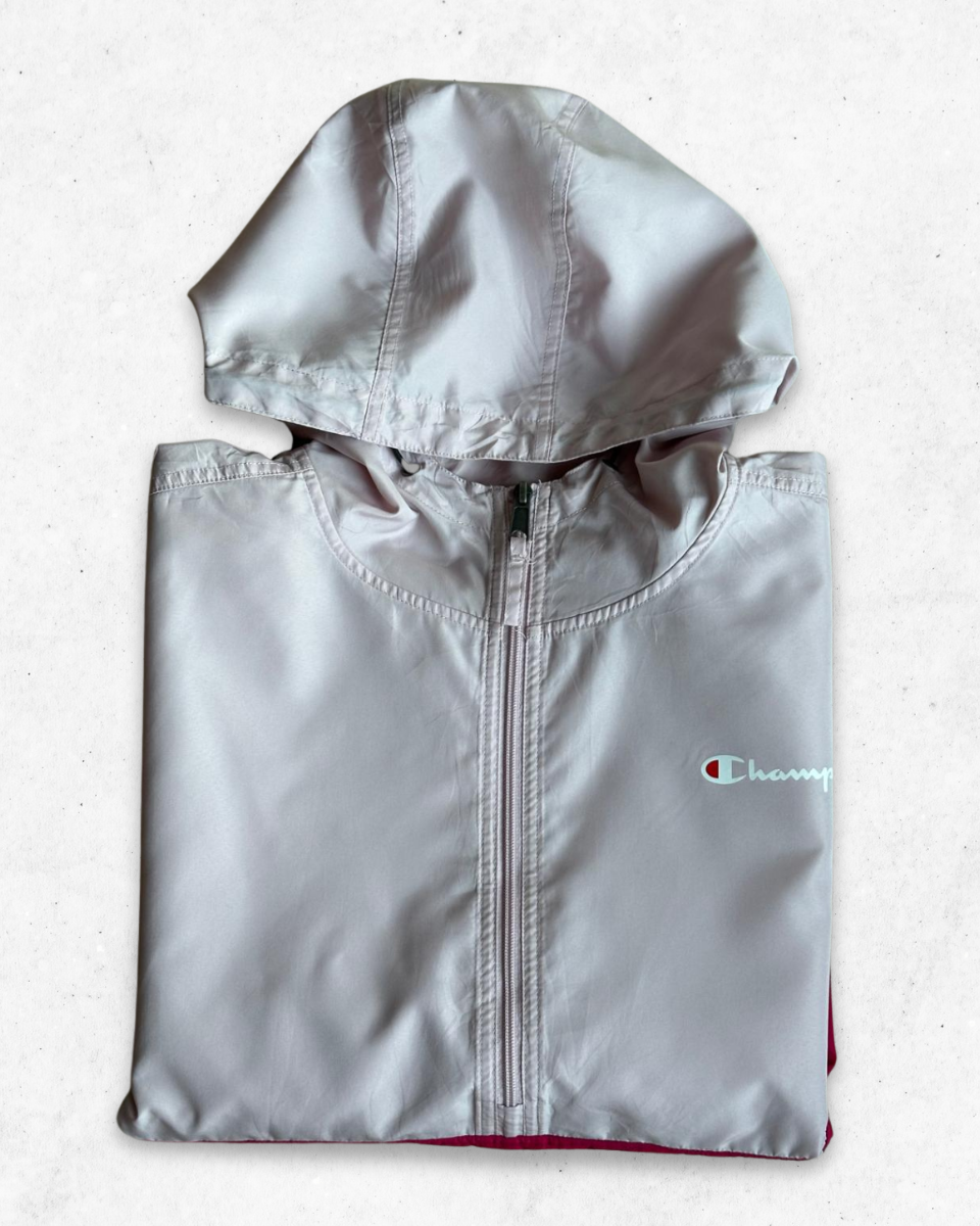 Chaqueta Cortavientos para Mujer, de la marca Champion en color Fucsia y Rosa. Impermeable y con Capucha.