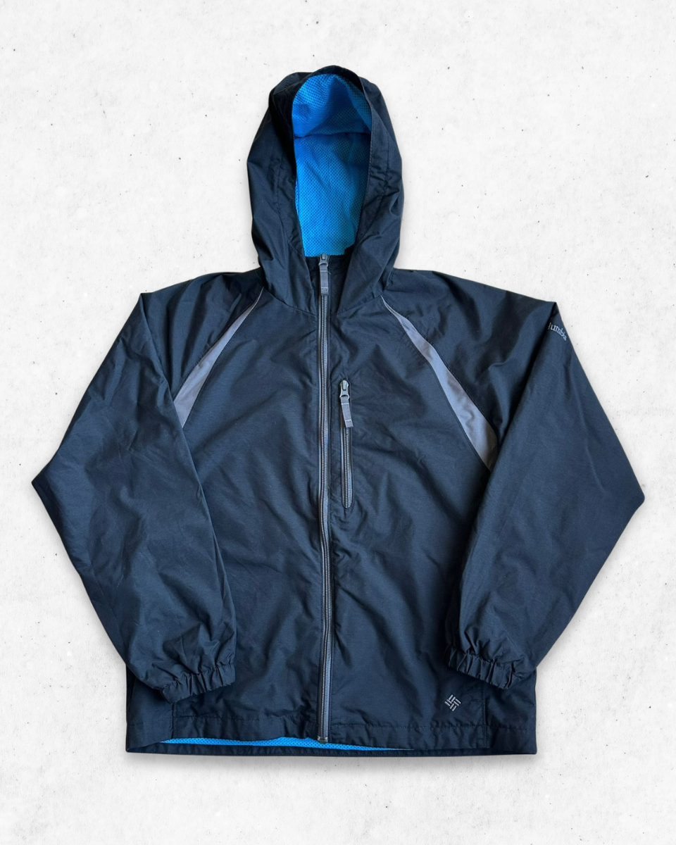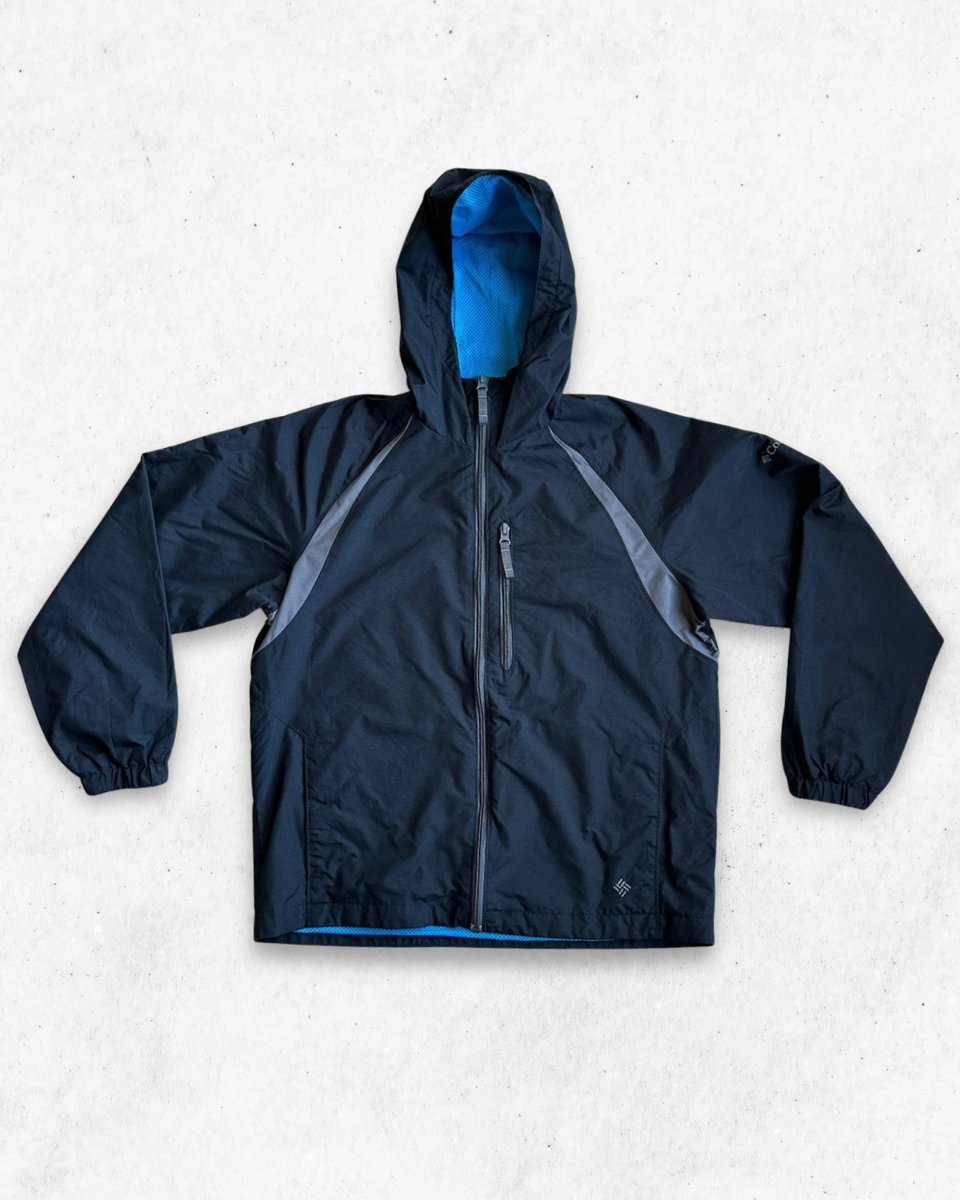 Chaqueta Cortavientos para Niños, de la marca Columbia en color Negro. Con Capucha recogible. Talla 14-16 Años. Más medidas en foto.