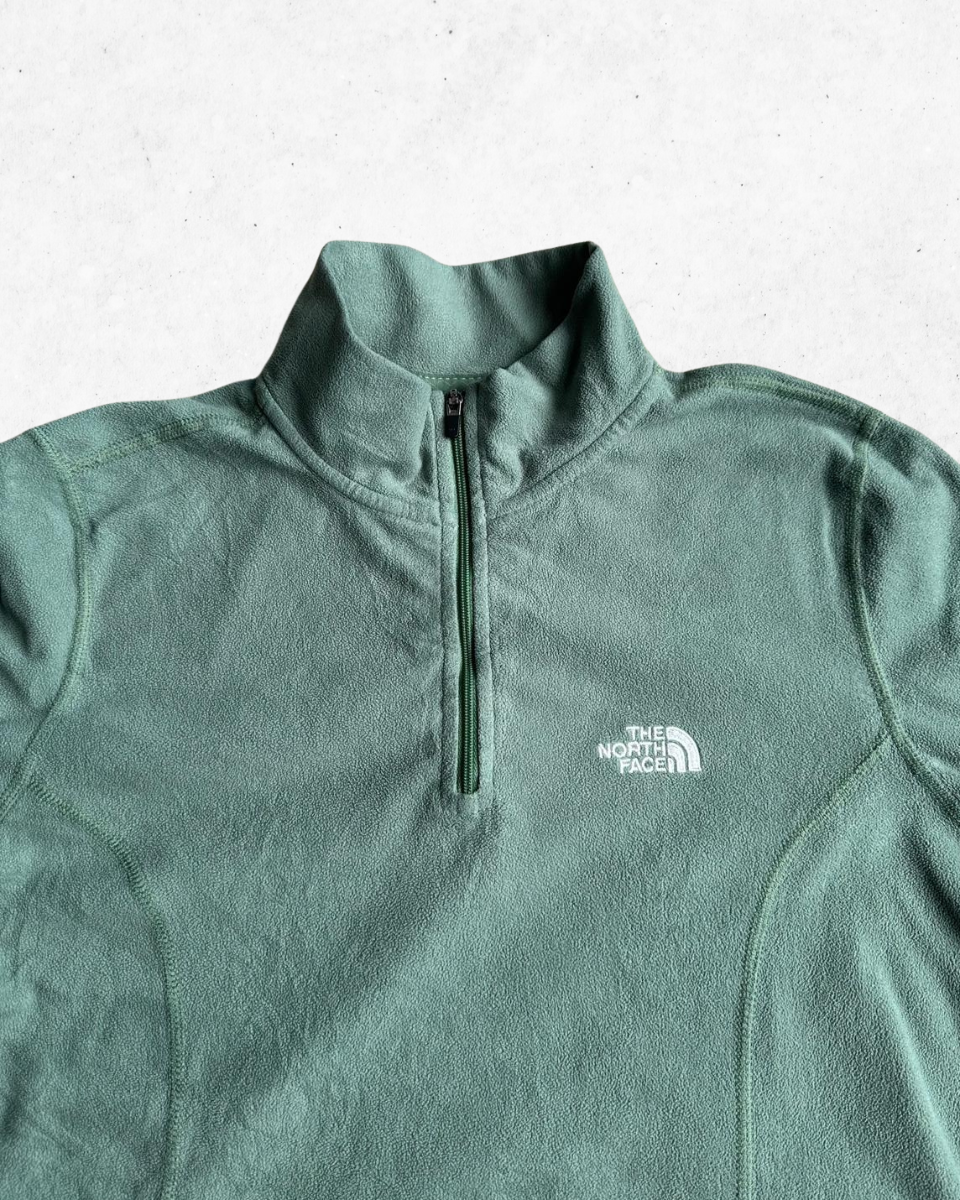 Chaleco Polar para Mujer de la marca The North Face en color Verde. Con cremallera de 1/4 y con TKA 100 (Thermal Kinetic Advancement), la tecnología de forro polar patentada por The North Face para ofrecer calidez sin un peso excesivo. Modelo Glacier.