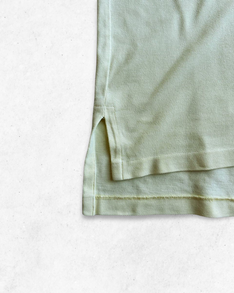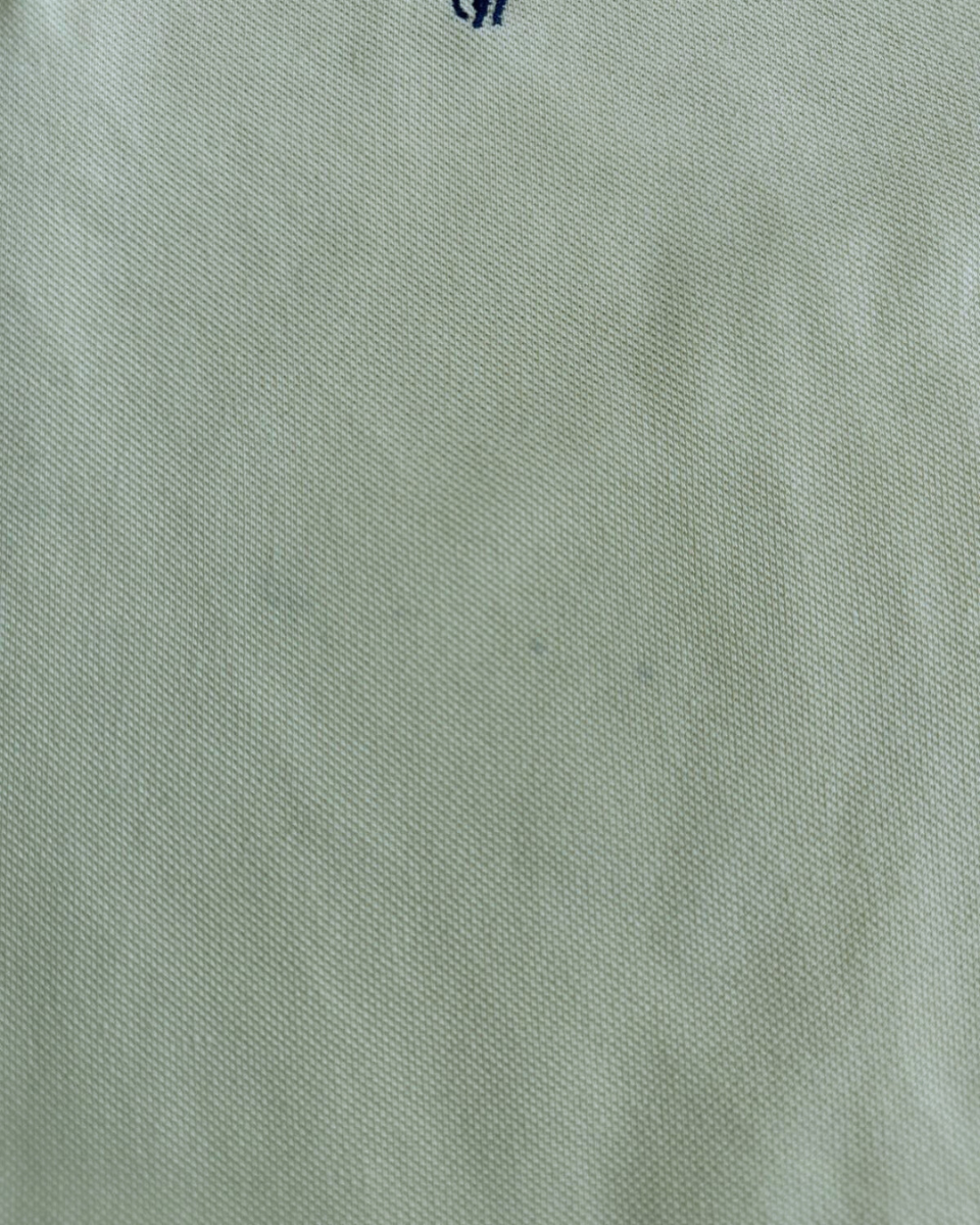 Polo para Hombre de la marca Ralph Lauren en color Amarillo Claro y Logo en Negro. Sin ningún desperfecto ni manchas reseñables. Salvo varias pequeñas manchas, casi inapreciables, en la parte delantera (Ver última foto).