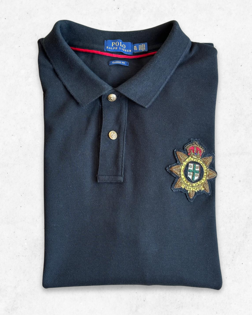 Polo para Mujer de la marca Ralph Lauren en color Negro y Escudo de New York. Con botones y bordados especiales.