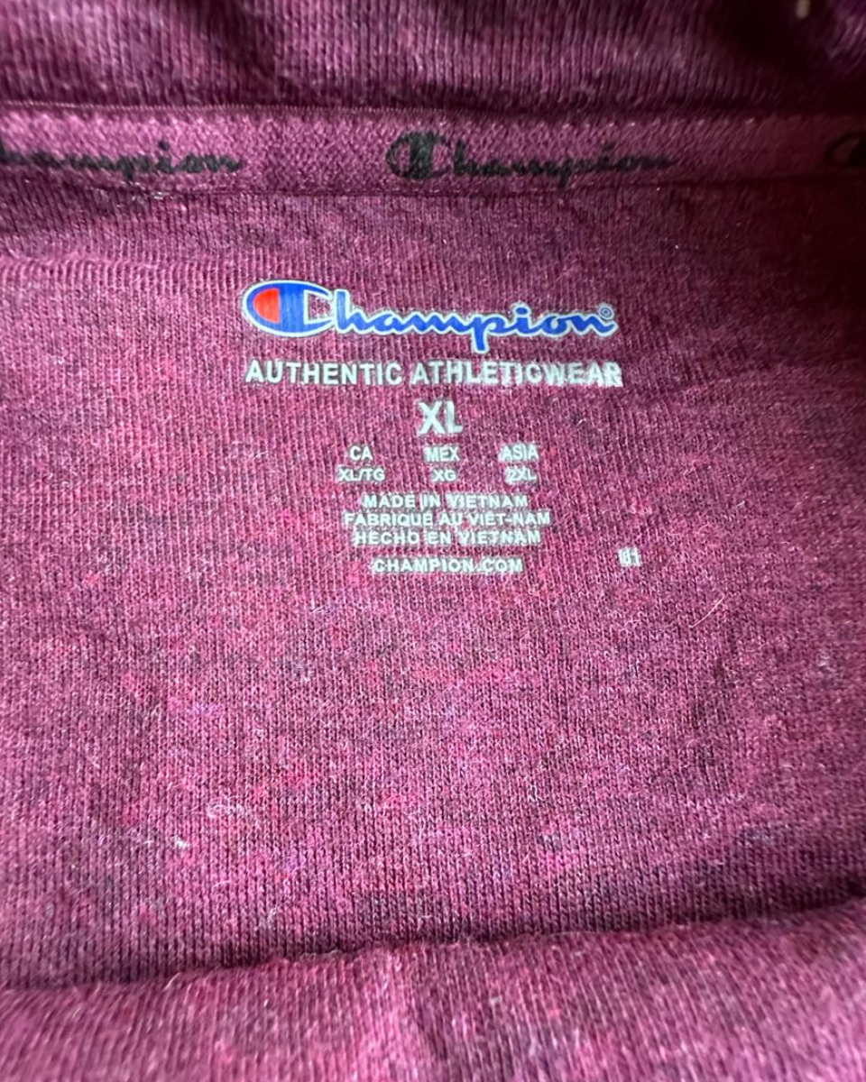 Sudadera para Mujer, de la marca Champion en color Burdeos. Estampado con relieve.